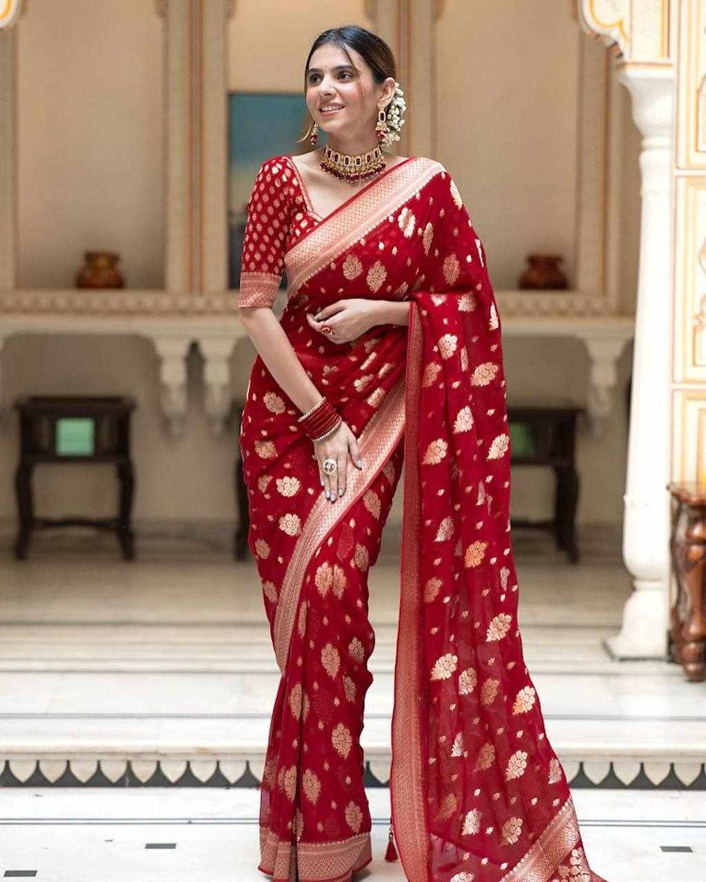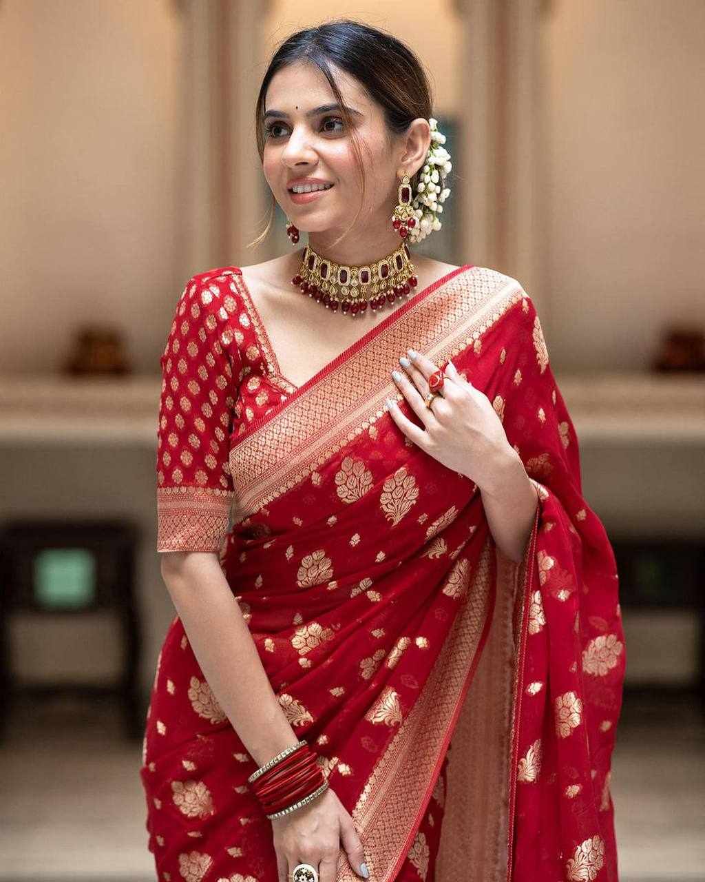 Name : KP-R 190 New Traditional Wear Red Saree