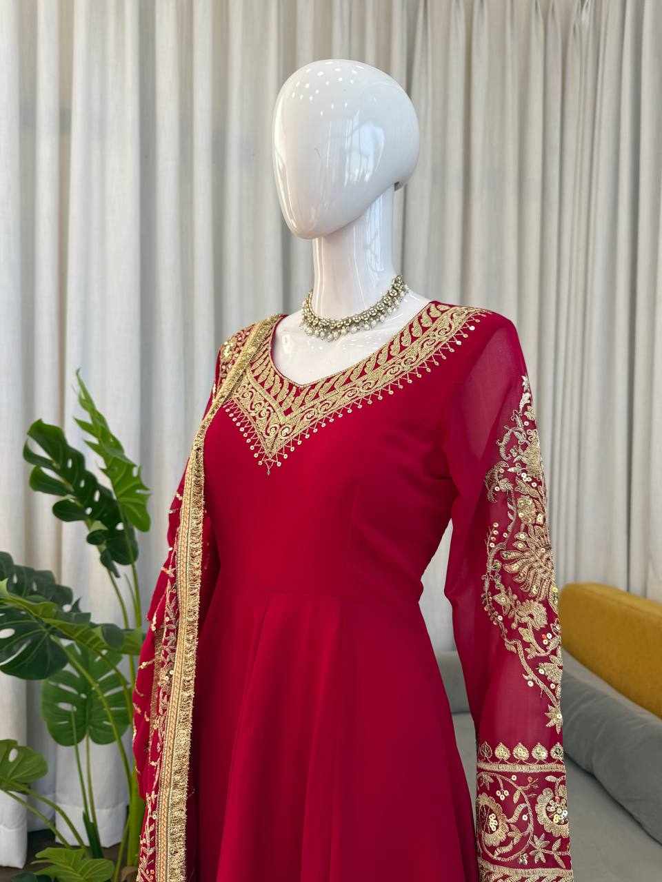 | Name : | RTC 5973 Foux Gorgette thread Work Anarkali |